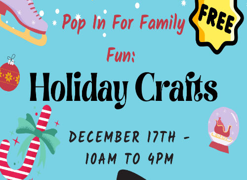 The Marietta History Center will be hosting its monthly Pop-In event on Saturday, December 17th from 10am-4pm. Pop-In’s provide children and their families the opportunity to interact with the museum through themed activities and crafts. Join us in, December for crafts and activities geared towards Holiday Crafts, families may enjoy them in the galleries.